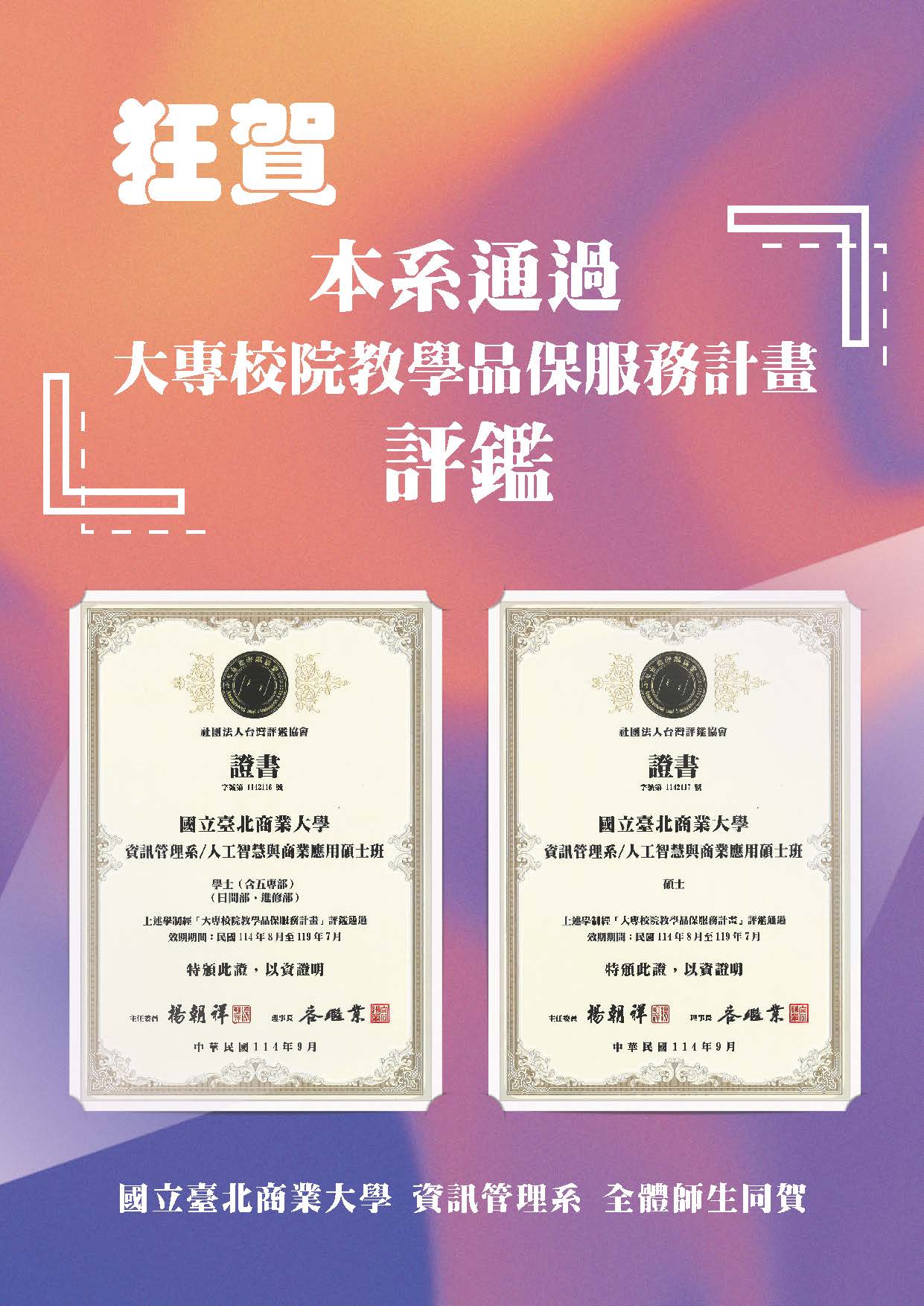 【恭賀】北商資管系通過大專校院教學品保服務計畫