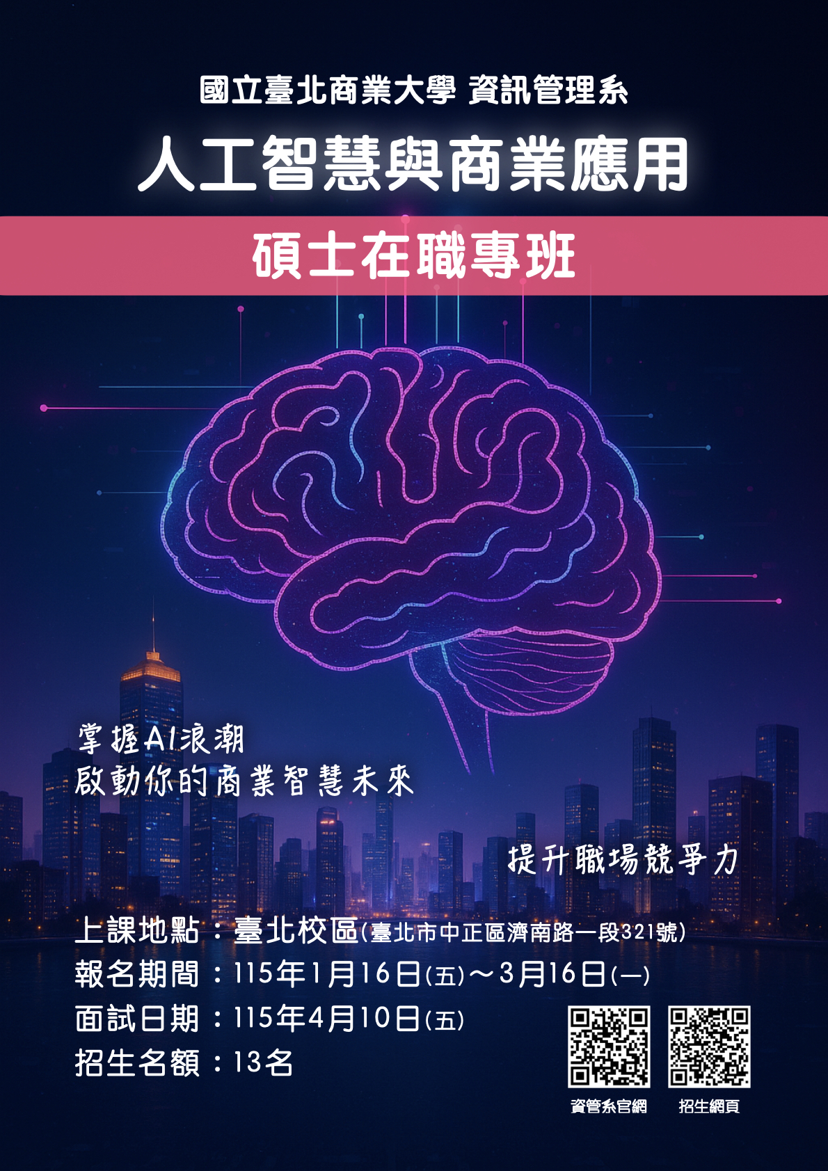【招生】115學年度資訊管理系人工智慧與商業應用碩士在職專班招生